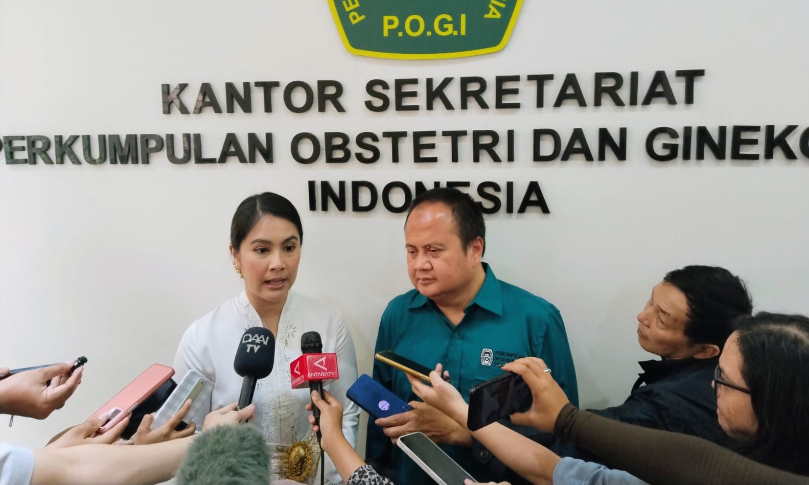 KETERANGAN PERS: Wakil Menteri Kependudukan dan Pembangunan Keluarga/Wakil Kepala BKKBN Ratu Ayu Isyana Bagoes Oka dan Ketua Umum POGI Prof. Dr. dr. Budi Wiweko dalam peringatan Hari Kartini di Rumah POGI, Pegangsaan, Menteng, Jakarta pada Selasa (21/4/2026). (SHANTY AULIA/KORANINDOPOS.COM)