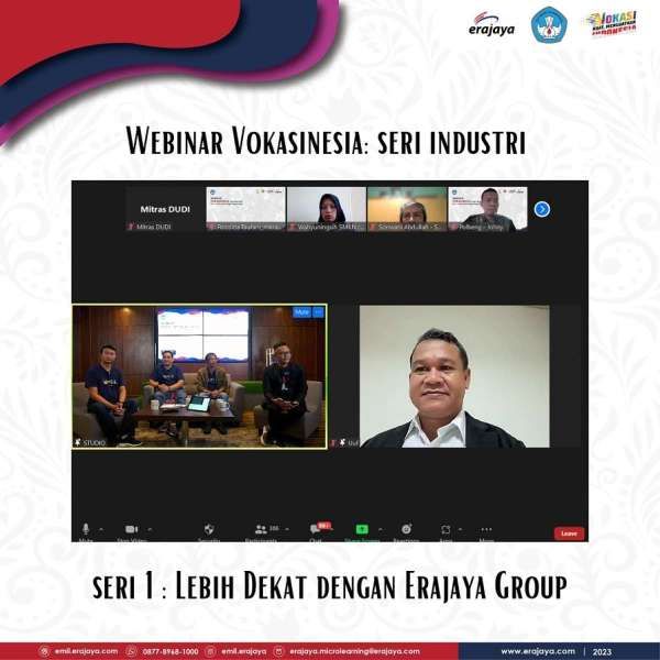 Erajaya Group, bersama Kementerian Pendidikan, Kebudayaan, Riset dan Teknologi melalui Direktorat Mitras DUDI, menggelar Webinar Vokasinesia yang diikuti oleh lebih dari 500 satuan pendidikanvokasi dari seluruh Indonesia pada 17 Mei 2023. Kehadiran Erajaya Group sebagai mitra industri pertama dalamseri webinar ini merupakan realisasi dari komitmen perusahaan pada sektor pendidikan Indonesia, khususnya dalammengembangkan kompetensi dan memberdayakan vokasi di dunia industri.