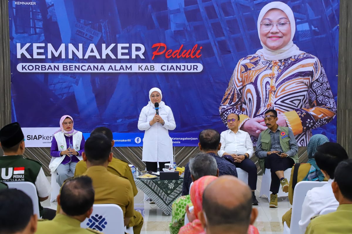 Koranindopos.com, Cianjur – Menteri Ketenagakerjaan, Ida Fauziyah menyerahkan bantuan kemanusiaan bagi para korban gempa di Kabupaten Cianjur, Jawa Barat, Senin, (19/12).