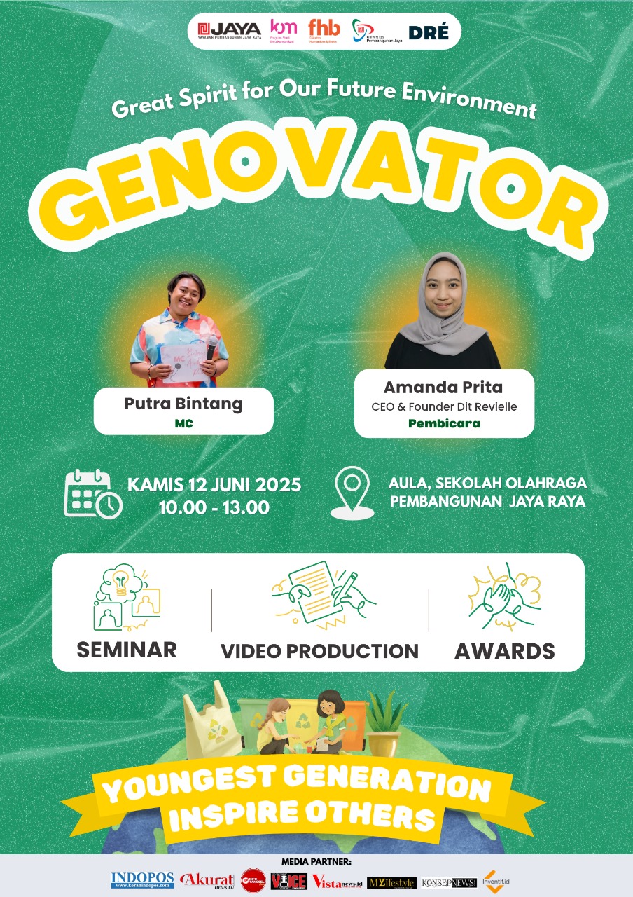 koranindopos.com – Tangerang Selatan. Sekolah Olahraga Pembangunan Jaya Raya (SOPJR) akan menggelar acara tahunan bertajuk Genovator pada Kamis, 12 Juni 2025, pukul 09.00–12.30 WIB. Acara ini merupakan bagian dari dukungan terhadap Sustainable Eco Development (SED) dengan mengusung tema “Great Spirit for Our Future Environment” dan tagline “Youngest Generation Inspire Others.”