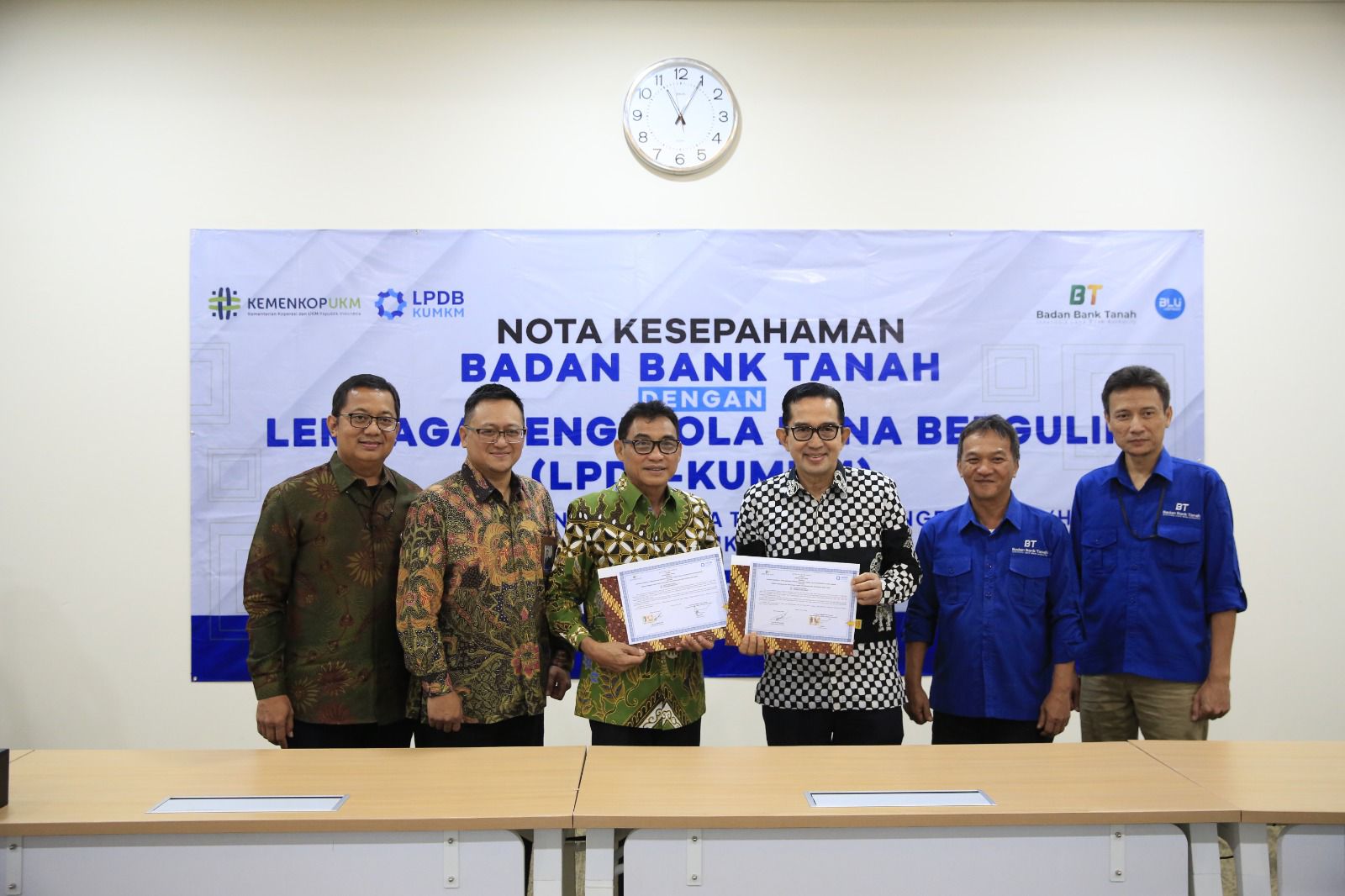 MoU yang ditandatangani oleh Direktur Utama LPDB-KUMKM Supomo dengan Kepala Badan Pelaksana Badan Bank Tanah Parman Nataatmadja disaksikan oleh jajaran Direksi LPDB-KUMKM dan Para Pejabat Badan Bank Tanah.