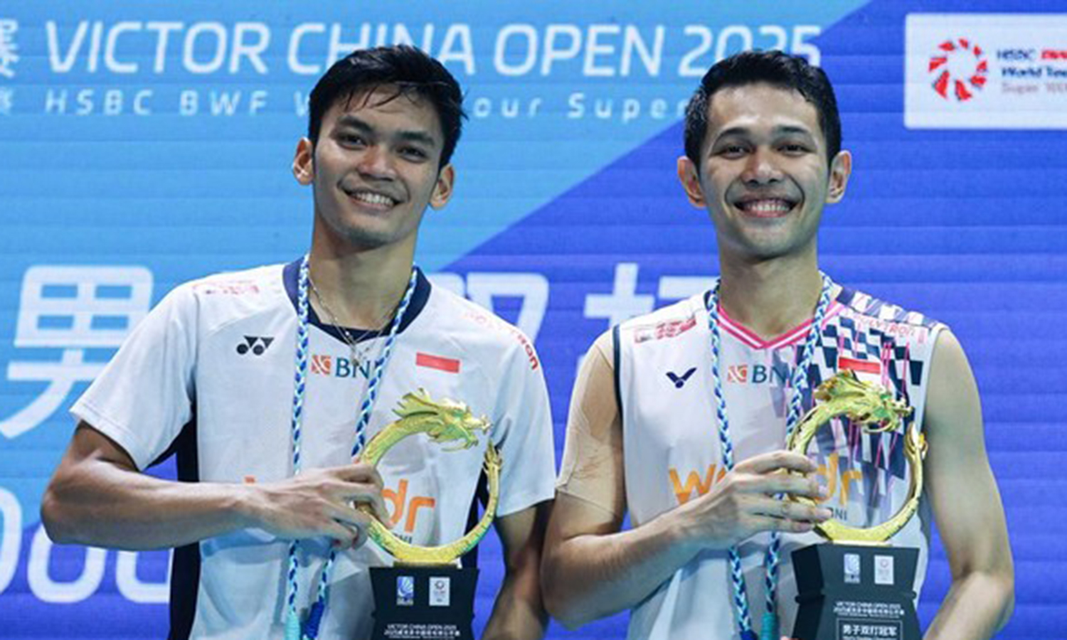 CAPAIAN GEMILANG: Pasangan pebulutangkis ganda putra Indonesia, Fajar Alfian-Muhammad Shohibul Fikri, sukses menjuarai China Open 2025. (FOTO: PBSI)