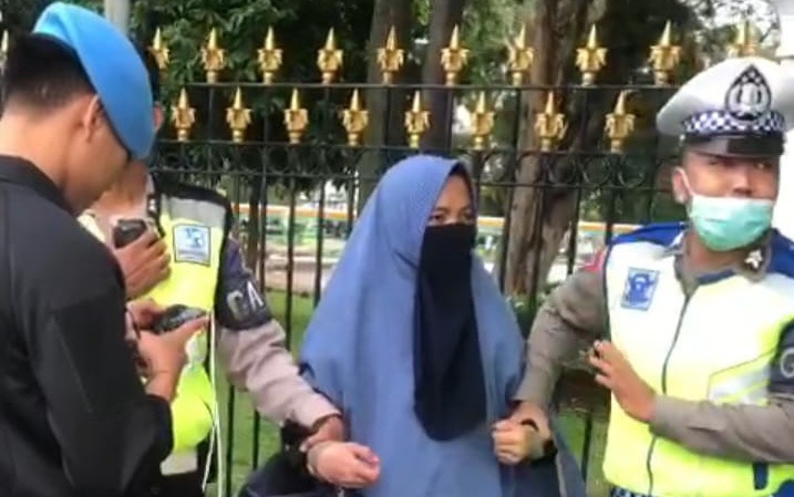 Kemudian, aparat mengetahui ada seorang perempuan tak dikenal bercadar yang berjalan kaki dari arah Harmoni ke Jalan Medan Merdeka Utara, tepatnya di pintu masuk istana. Perempuan tersebut menghampiri anggota Paspampres yang sedang siaga.