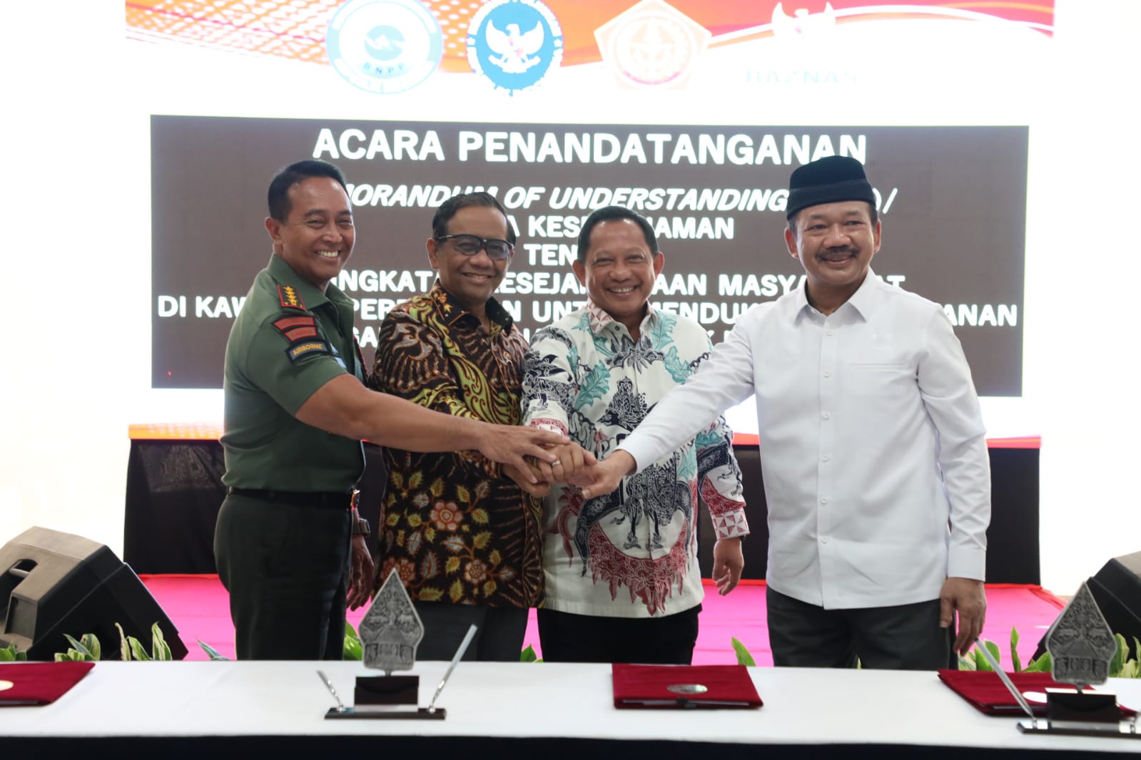 Penandatanganan tersebut dilakukan Mendagri bersama Panglima Tentara Nasional Indonesia (TNI) Andika Perkasa dan Ketua Badan Amil Zakat Nasional (Baznas) Noor Achmad. Penandatanganan ini juga disaksikan langsung oleh Menteri Koordinator Bidang Politik, Hukum, dan Keamanan (Menkopolhukam) Mahfud MD selaku Ketua Pengarah BNPP.
