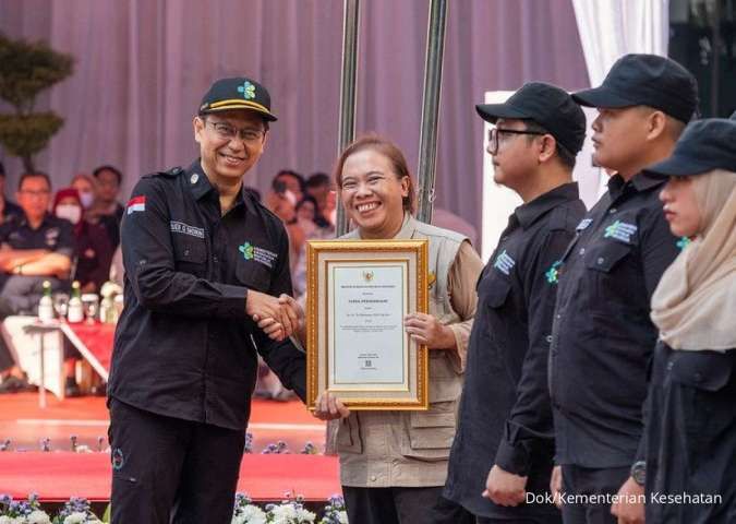 Menteri Kesehatan RI Budi Gunadi Sadikin memberikan penghargaan kepada para personel TCK-EMT Tipe 2 Indonesia yang telah menyelesaikan misi bantuan kemanusiaan dalam membantu penanganan bencana gempa bumi di Turki.