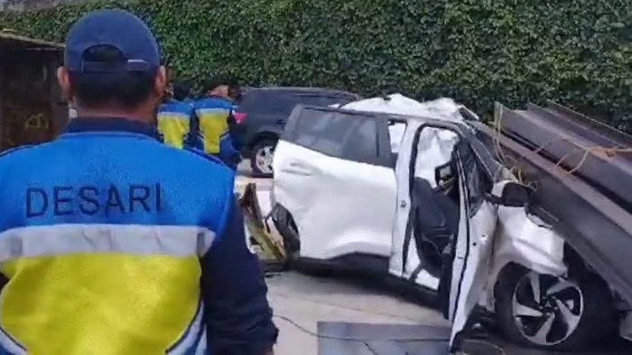 Dalam foto dan video yang beredar di media sosial, tampak jelas kondisi Mitsubishi Xforce yang ringsek parah di bagian depan. Kaca depan pecah, kap mesin remuk, dan pelat-pelat besi besar terlihat menimpa bagian depan mobil, sementara bagian belakang mobil masih tampak utuh. Kejadian ini memicu kekhawatiran akan keselamatan di jalan tol yang padat.