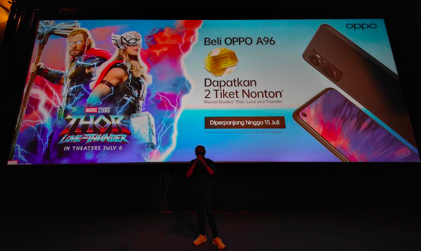 JAKARTA, koranindopos.com – Promosi bersama OPPO Indonesia dan The Walt Disney Company dalam pemutaran perdana film Marvel Studios’ “Thor: Love and Thunder” rupanya memberikan hasil yang positif, terutama pada penjualan perangkat OPPO A96 dan menuai respons sangat baik. Hal ini disampaikan OPPO Indonesia pada penayangan perdana film Marvel Studios’ “Thor: Love and Thunder” yang berlangsung di CGV Grand Indonesia, Jakarta pada hari ini (6/7) bersama dengan Media, Tech Influencer, penggemar setia OPPO, Ofans, dan para pemenang aktivitas daring seputar kolaborasi ini.