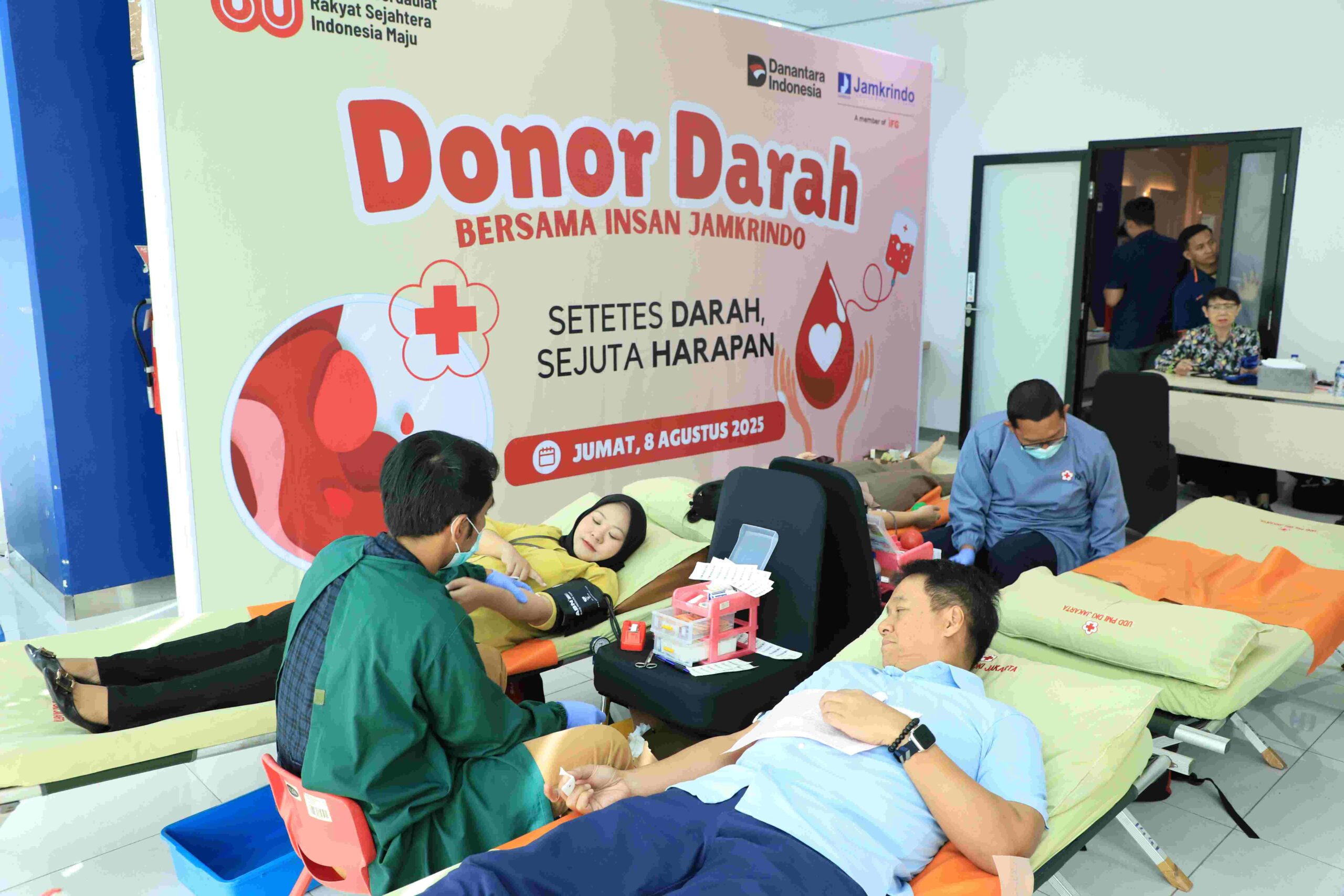 koranindopos.com, JAKARTA – Dalam rangka memeriahkan Hari Ulang Tahun ke-80 Kemerdekaan Republik Indonesia, PT Jaminan Kredit Indonesia atau PT Jamkrindo bekerja sama dengan Palang Merah Indonesia (PMI) menggelar kegiatan sosial donor darah yang diikuti oleh karyawan dan karyawati dari berbagai unit kerja di lingkungan Jamkrindo.