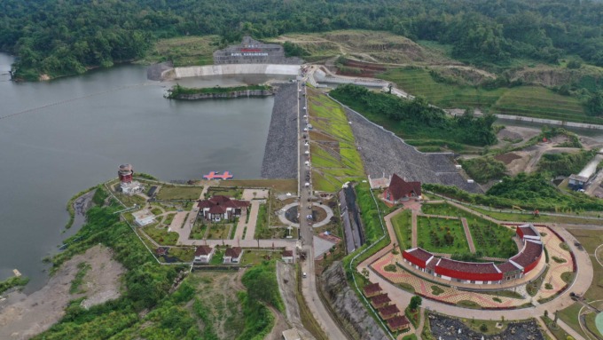 “Bendungan Kuwil Kawangkoan ini dibangun sejak 2016, artinya sudah lima setengah tahun, dibangun dengan anggaran Rp1,9 triliun. Ini akan memiliki kapasitas tampung 26 juta meter kubik, dengan luas genangan 157 hektare,” ujar Presiden.