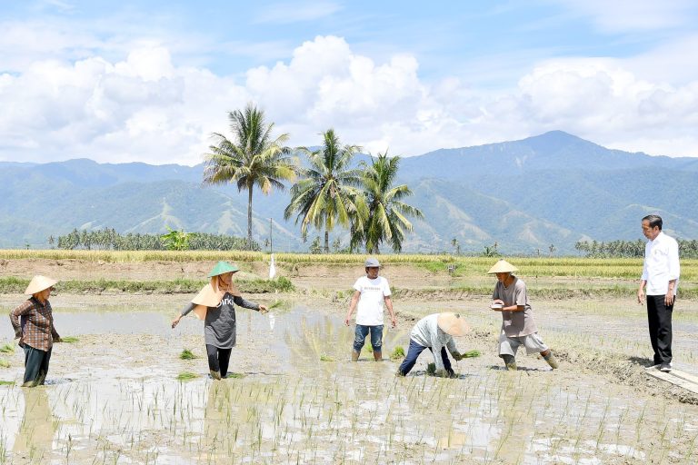 “Pada kesempatan ini, saya ingin melihat panen besar yang ada di Kabupaten Sigi, Sulawesi Tengah, dan hasilnya saya lihat bagus. Per hektare bisa mencapai 6-6,2 ton, artinya hasil panen ini baik,” ungkap Presiden Jokowi mengenai hasil panen yang dilihatnya.
