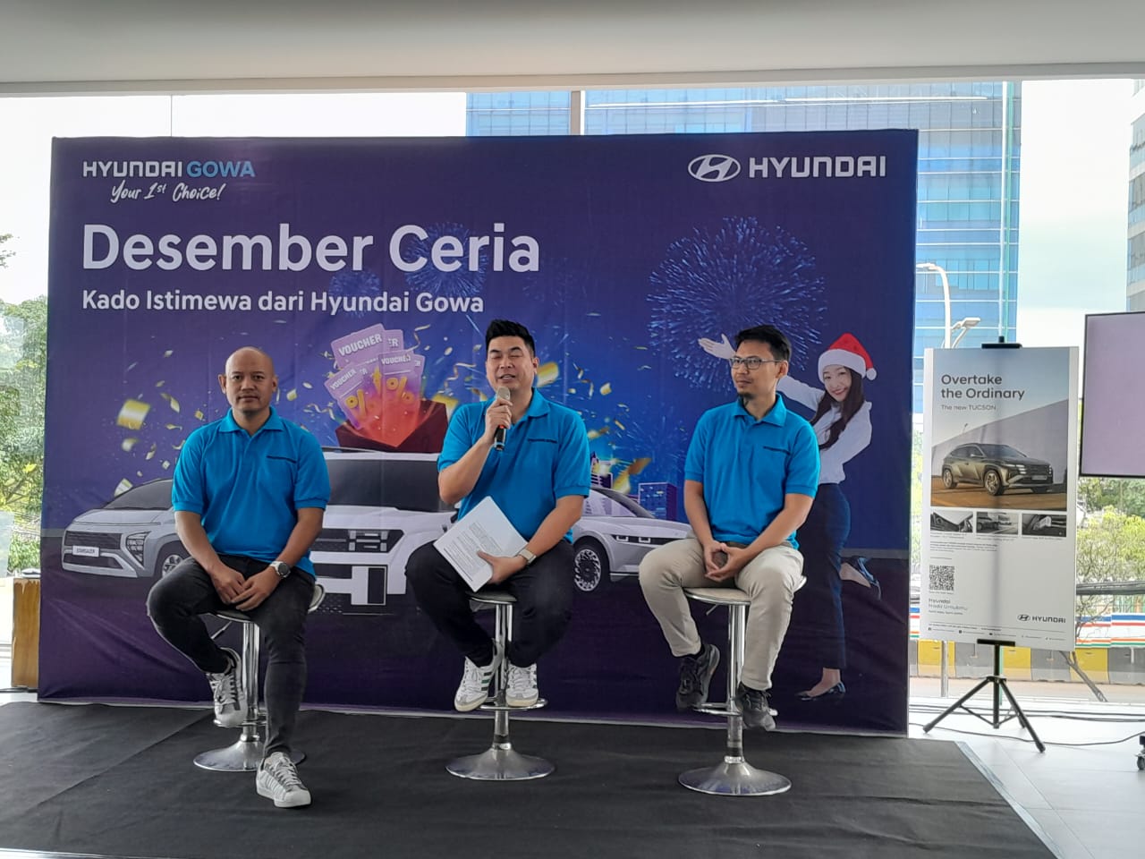 Dalam acara gathering komunitas dan media Hyundai Gowa yang bertujuan mempererat silaturahmi dan menyambut tahun baru ini, para awak media serta anggota komunitas Hyundai Stargazer mendapatkan layanan general check-up gratis. Juga tersedia unit test drive Hyundai The New Tucson untuk dicoba di berbagai ruas jalan di Jakarta, sampai acara santap bersama, suguhan musik live akustik, sampai games melempar dadu raksasa ke arah deretan foto-foto berbagai model Hyundai idaman.