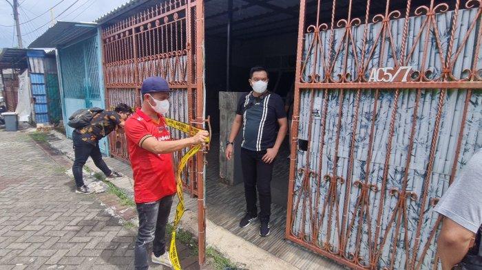WAHYU TRIONO/KORANINDOPOS.COM OLAH TKP: Petugas kepolisian memasang garis polisi di rumah lokasi penemuan satu keluarga tewas diduga akibat kelaparan di Perumahan Citra Garden 1 Extension, Kalideres, Jakarta Barat pada Kamis lalu (10/11/2022).