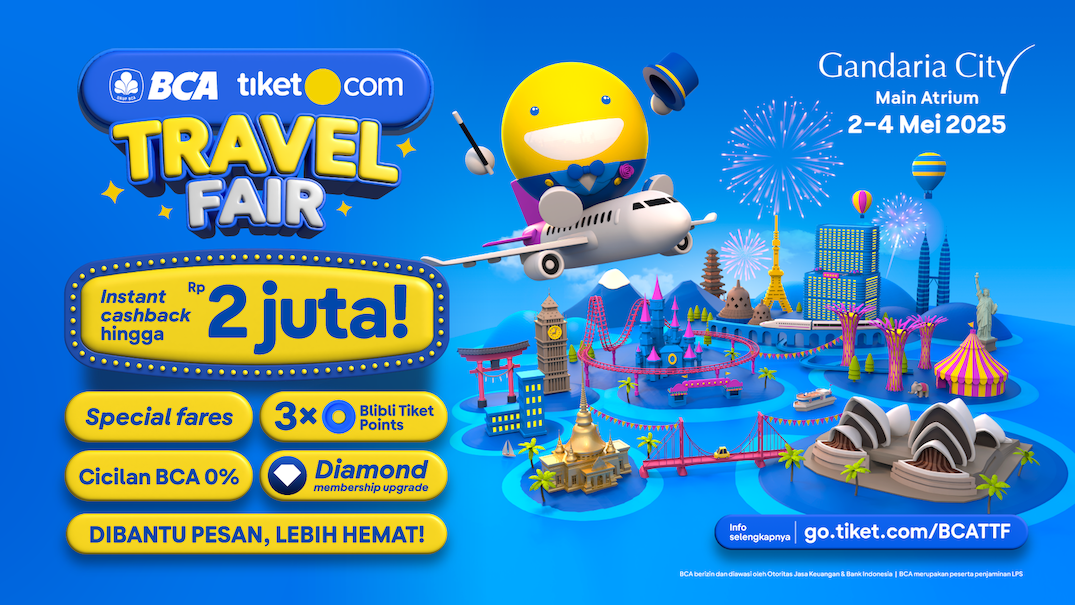 Travel fair merupakan salah satu cara terbaik untuk mewujudkan liburan impian dengan harga lebih ekonomis. Selama BCA tiket.com Travel Fair 2025 berlangsung, masyarakat yang juga pengguna Kartu Kredit BCA tiket.com Mastercard dapat menikmati berbagai keuntungan, seperti harga khusus, instant cashback hingga Rp2 juta, bonus hingga 3x Blibli Tiket Points untuk pembelian tiket pesawat, akomodasi, hingga atraksi wisata. Dengan mengkombinasikan beragam promo yang tersedia dalam BCA tiket.com Travel Fair 2025, perencanaan liburan menjadi lebih maksimal dengan budget minimal.