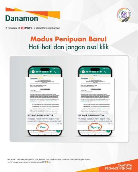 Ditambah lagi, modus penipuan siber pun sekarang tidak hanya menggunakan file .APK dan .Pdf saja, namun ada yang baru lagi yaitu nasabah akan diarahkan untuk klik tombol view atau sign up langsung di chat tersebut oleh penipu. Hanya dengan satu kali klik saja, data nasabah akan diretas oleh para pelaku.