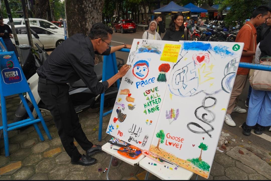Pesan perdamaian juga dituangkan dalam bentuk seni melalui Peace Mural, kolaborasi mural yang menggambarkan cita-cita harmoni dunia. Acara semakin semarak dengan sesi Open Mic yang memberi kesempatan peserta menampilkan karya, musik, dan cerita inspiratif. Sementara itu, pameran poster menampilkan karya terbaik dari lomba poster perdamaian yang sebelumnya digelar.